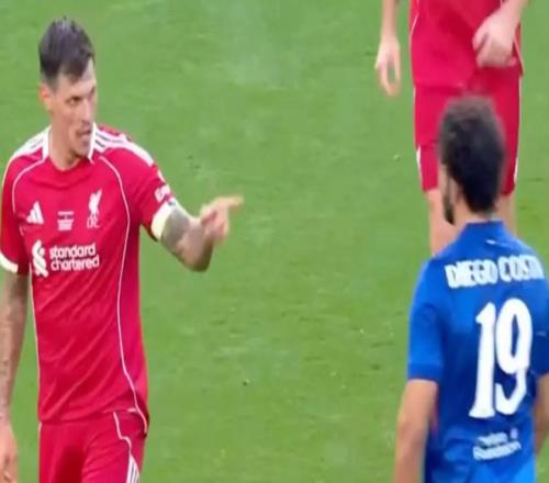 雷速体育10月11日宣 在今晚切尔西与利物浦的传奇慈善赛中意外地出现了火爆的一幕:代表切尔西出战的迭戈·科斯塔在与利物浦后卫斯科特尔的对抗中发生冲突,随后更是以一次故意犯规的动作进行报复。