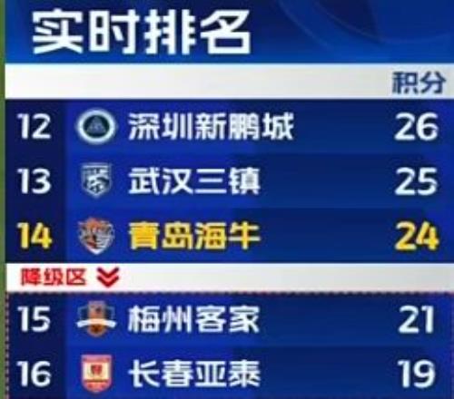 随着海牛队1-0从武汉三镇队身上拿到3分,中超积分榜的保级形势彻底明朗!