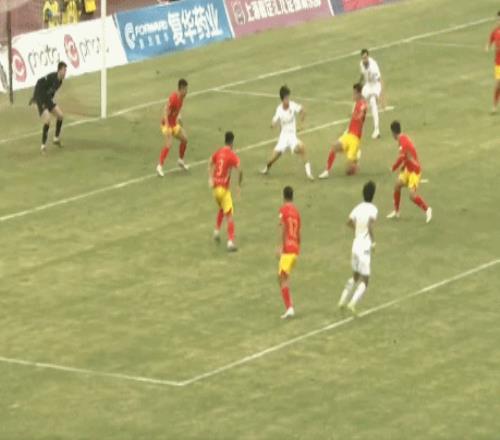 主场对阵南通支云,上半场补时阶段,侯煜突入禁区之后斜射稍稍偏出,错失破门良机。