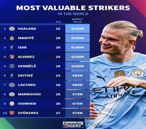哈兰德、姆巴佩并列“身价最贵”基本无争议。哈兰德过去两季持续顶级产能与稳定健康,英超与欧冠双线都有硬数据作背书;姆巴佩转会皇马后市场热度、商业拉力与即战力叠加,1.8亿的锚点仍能解释。阿尔瓦雷斯的“1亿区间”也合理:能打9号/二前锋/边锋,压迫、衔接与无球跑动为强队体系增值,身价不仅是进球数。