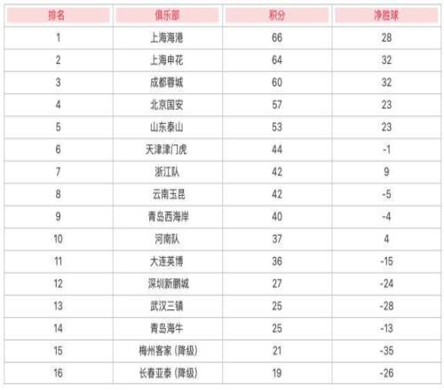 长春亚泰在第29轮联赛提前降级,仅获得19个积分。梅州客家在今天不敌北京国安,他们连续两年遭遇降级,在本赛季获得了递补资格,不幸的是依然难逃命运。